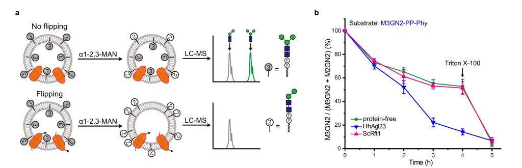 图2 Rft1和HhAgl23体外翻转酶活测定