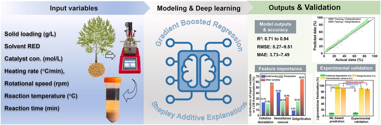 孙付保教授团队在机器学习指导生物质预处理方法构建方面取得重要进展,研究成果“Machine learning-driven optimization of biphasic pretreatment conditions for enhanced lignocellulosic biomass fractionation”正式发表于Energy(一区, Top, IF=9.4)。