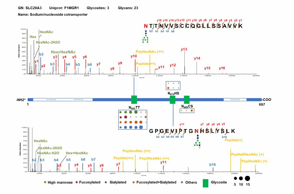 图二 首次鉴定到糖基化位点的注释谱图