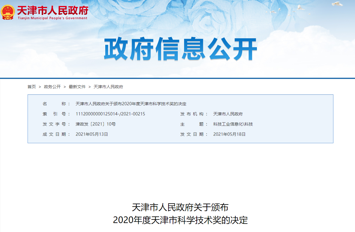 5月18日,天津市人民政府正式发文颁布了2020年度天津市科学技术奖的决定。h动画