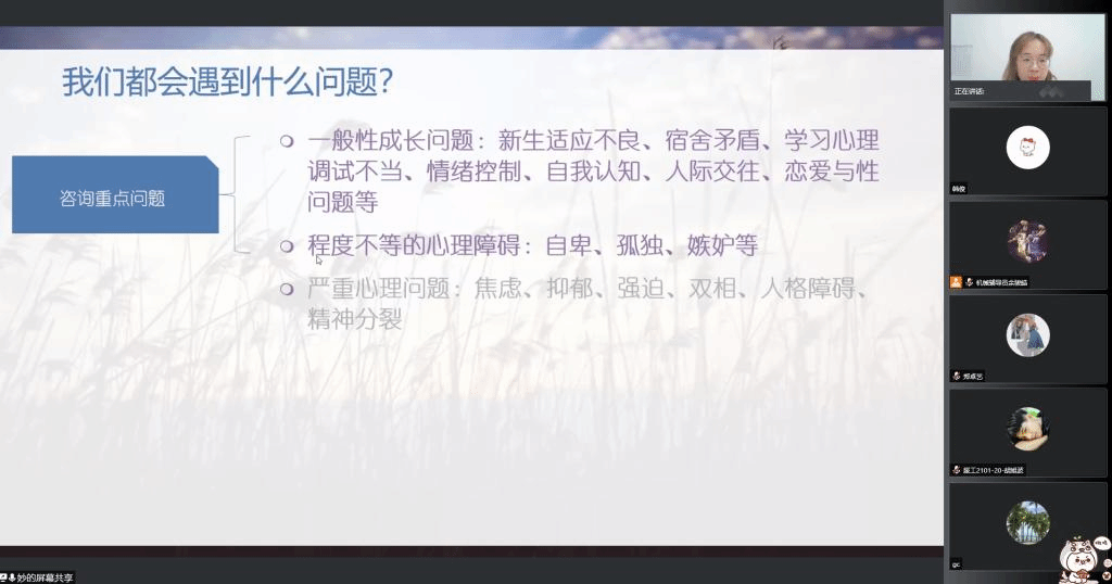 本次讲座主题为《给心灵一片净土——本科生心理问题及调试》,讲座由国家二级心理咨询师、h动画