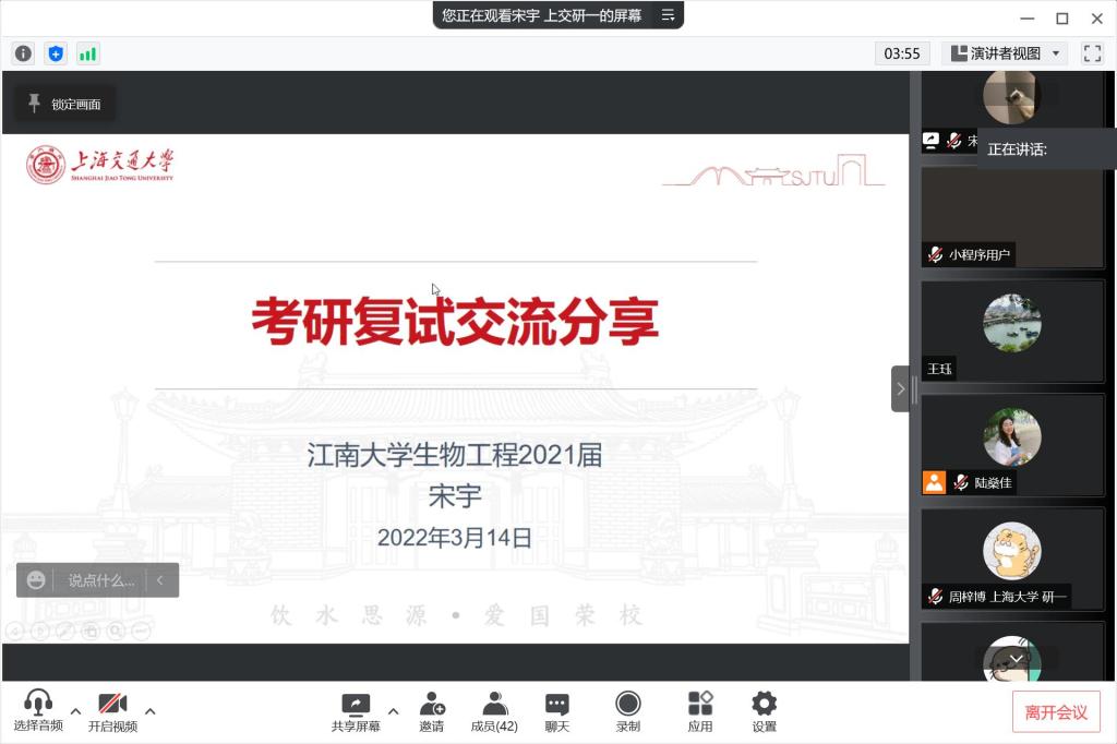 以网络会议的形式,组织开展2022届考研复试调剂“云”分享活动。辅导员陆燊佳、侯景瑞、王珏参加活动,邀请h动画