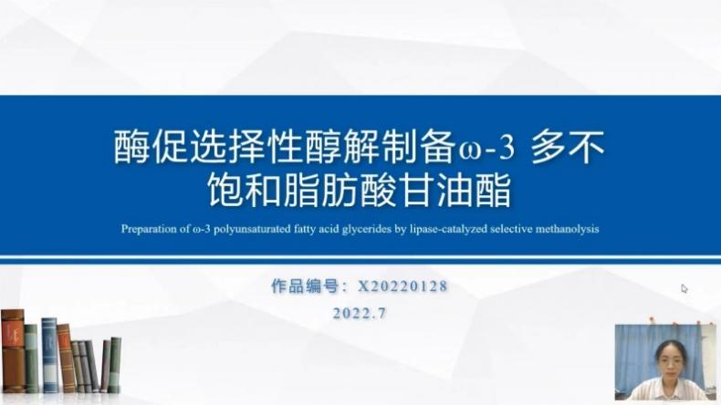 本届大赛受疫情影响,全程采用网络方式完成。经过材料初审和复赛,我校9个学生项目入围决赛。经过激烈角逐,食品学院李才明、王小三老师指导,陈烨等同学参赛的《酶促选择性醇解制备富含ω-3多不饱和脂肪酸的甘油酯》斩获特等奖。食品学院郑召君、徐勇将老师指导,艾子璇等同学参赛的《黑豆抗氧化肽抑制乳液氧化作用研究》,食品学院王刚老师指导,石刘婷等同学参赛的《基于植物乳杆菌对缓解多囊卵巢综合征的膳食干预策略》,生命科学与健康工程学院龚劲松、苏畅老师指导,江佳宇等同学参赛的《计算机辅助设计提升角蛋白酶热稳定性》,h动画