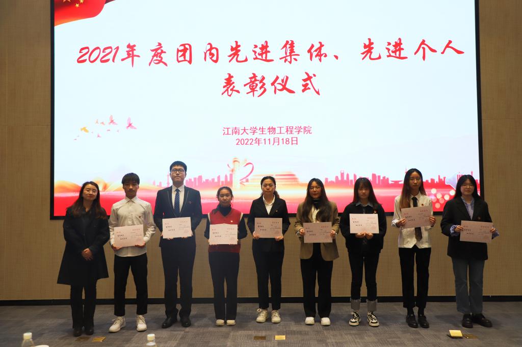 在决赛计分期间,举行2021年度团内先进集体和先进个人表彰仪式。获奖同学代表无锡市优秀共青团员余杨青、院青马班成员余乐彤、院团务中心郭雨雯以“奋进新征程 建功新时代”的主题分享环节,分别围绕“十五分钟便民圈”、“新时代青年发展”和“青年有为”进行交流,展现了新时代生工学子的蓬勃朝气。