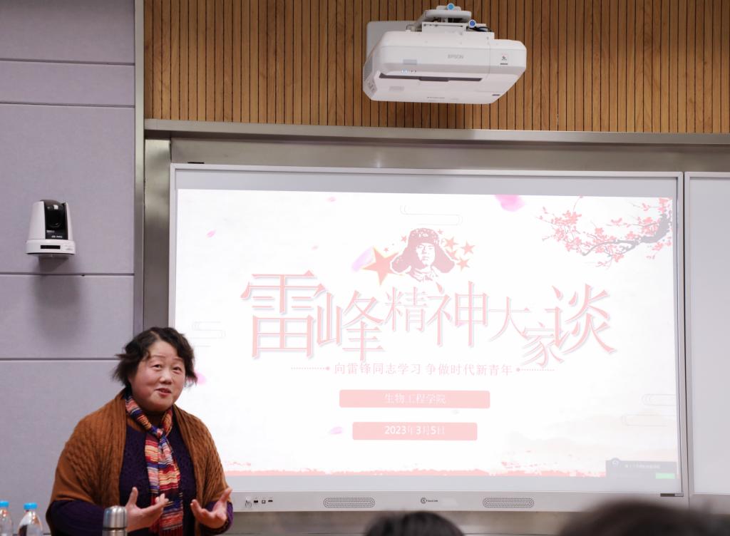 邀请“高校银龄教师支援西部计划”援派教师帅桂兰与“雷锋特称团支部”酿酒2102团支部展开面对面交流,学院团委书记许亦男主持座谈。帅老师从援疆的亲身经历讲起,以照片的形式,与团支部同学分享退休后选择继续投身教育事业、支援边疆的初衷,以及在这段援派经历中的收获与体悟。讲述中帅老师句句不提奉献,做的事却无不体现奉献,她以实际行动生动诠释了“一段援疆路、一世援疆情”的甘于奉献、勇于担当的崇高精神,号召广大青年身体力行投身到志愿服务之中,让雷锋精神在新时代绽放更加璀璨的光芒。“帅老师身上那份无私奉献、不计回报的品质让我深受触动,作为‘雷锋特称团支部’的班长,我更应该以身作则,带领团支部广大青年走在前列,深刻领悟雷锋精神的时代内涵,用行动诠释新时代的雷锋精神。”“雷锋特称团支部”班长赵东琳在交流中发言,其他团支部成员也踊跃参与讨论,共话“新时代背景下雷锋精神的现实意义”。