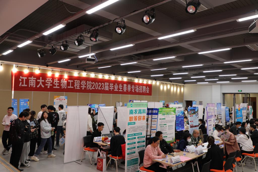 在北区大学生活动中心举办2023届毕业生春季专场招聘会。经用人单位报名、学院筛选,共有65家用人单位参加本次招聘会,其中包括诸多学院理事会单位、行业龙头企业,涉及生物发酵、酿造、食品、医药、化工等行业,提供就业岗位1000个以上。