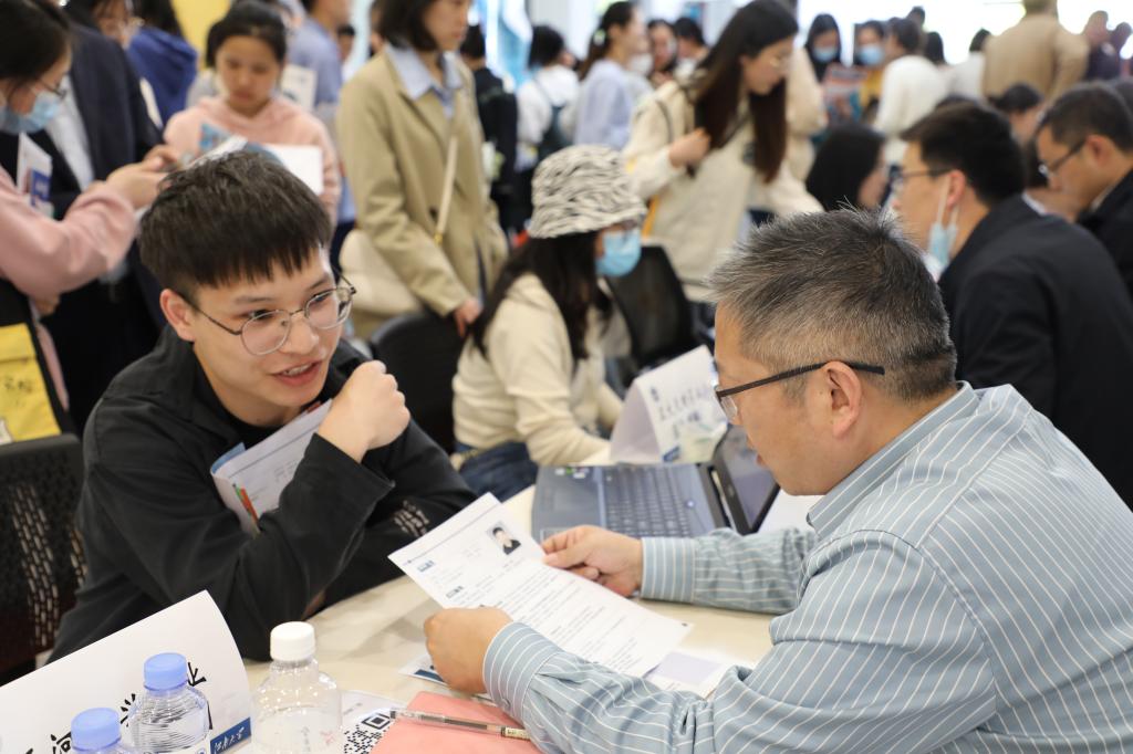 招聘会现场气氛热烈,求职学生向意向单位投递简历,就公司概况、薪资水平、发展前景等向用人单位进行了详细了解,部分企业还进行了现场面试,和学生初步达成签约意向。