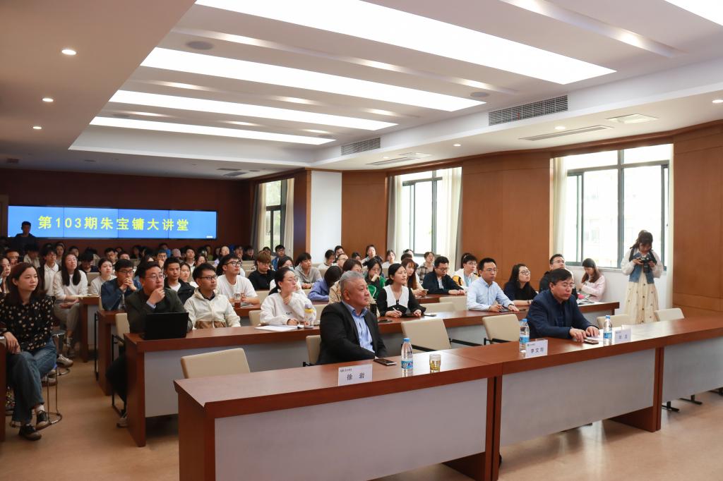 院长刘龙教授主持,近百名师生聆听讲座、参与互动,气氛热烈。