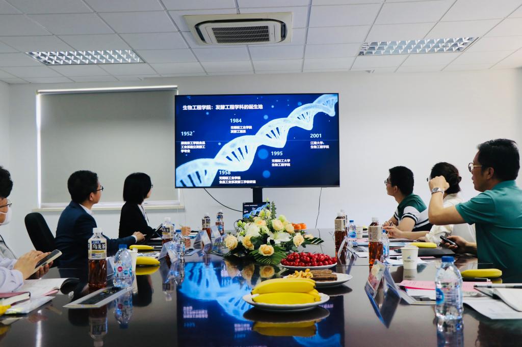 作为中国发酵工程学科的诞生地,近年来在人才培养、科学研究、社会服务等方面取得的成绩。交流过程中,校企双方围绕产学研合作、学生就业等开展了详细讨论。会后,周云龙一行还参观了公司的生产车间,并和在森松工作的学院校友进行交流,了解发展情况。