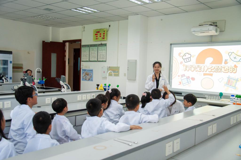 趣味科普小课堂。走进实验室,小朋友们认真穿戴好实验服,迫不及待地准备开展下个环节“趣味科普小课堂”。学院IGEM竞赛团队的同学们为小朋友们带来了《走近科学的色彩》《邂逅“微生物”的浪漫》主题分享。
