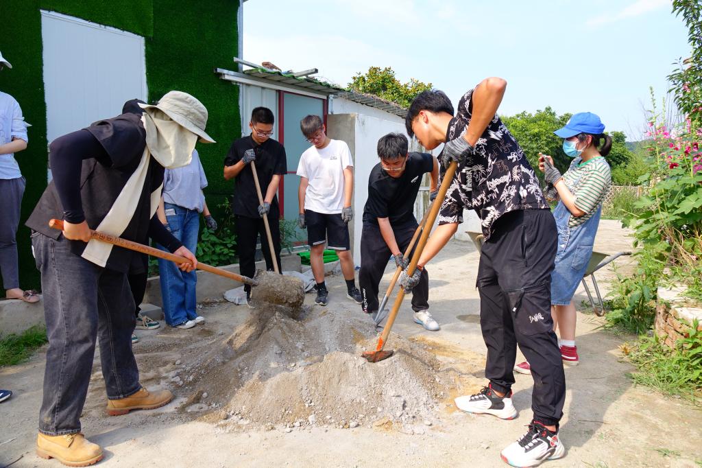本次实践活动的主题是制作木制秋千。在实践基地老师的指导下,同学们分为四组,分别完成了搭建立柱、制作展示牌、安装秋千底座和制备水泥等工作。尽管烈日炎炎,但同学们依然热情高涨,积极参与。在有序高效的分工合作之下,历经四个小时的不懈努力,最终完成了秋千的制作。