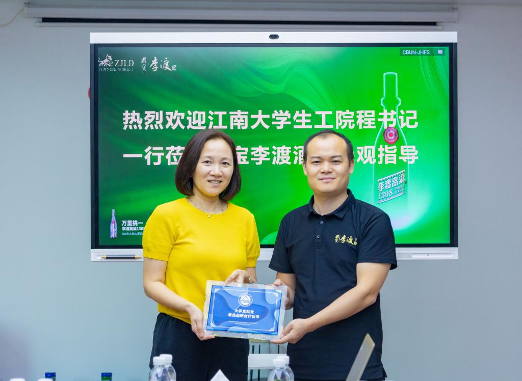 党委书记程捷音带队来到江西李渡酒业有限公司走访交流,学院辅导员张同舟及学生代表一同参加。