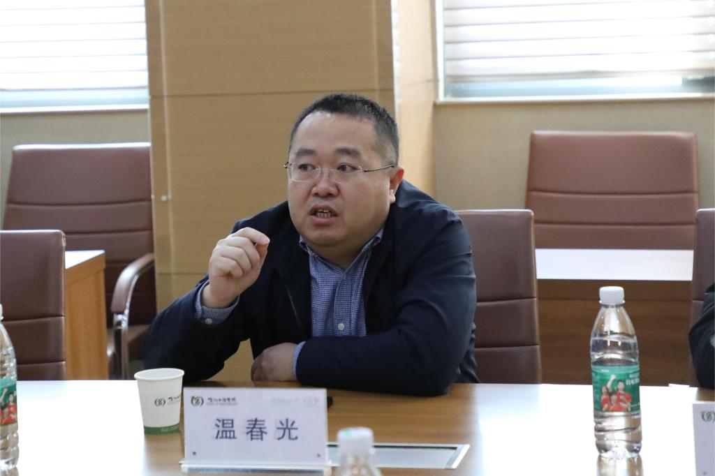 。学院党委副书记、副院长林丹,学工办主任兼团委书记周春江,辅导员张同舟、王珏与温春光一行开展座谈交流。