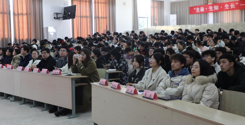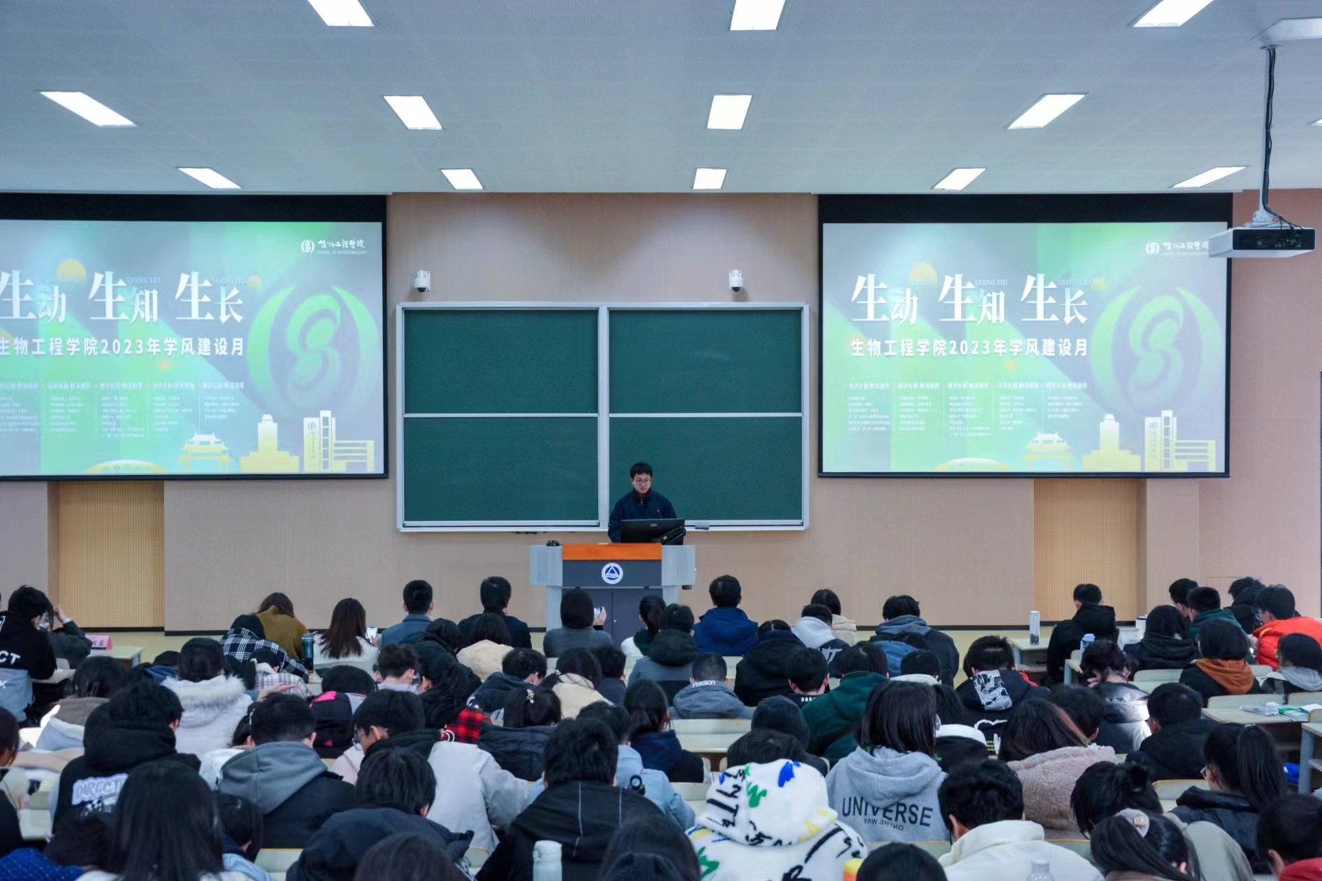 2023年学风建设情况报告。从工作体系、学风成果、数据分析和诚信考试四个方面和学生进行交流,并强调了学风建设对于国家、社会、学校以及学生四个层面的重要意义。指出学院以学生为本,立足学科特色,围绕“价值导向”“目标导向”“质量导向”“创新导向”等四个导向,制定了包含“优学”“励学”“督学”“辅学”“善学”五位一体学风计划,着力打造“醉美”学风体系。同时,就学院2023届本科生升学情况、近两年学业课程挂科率以及在读本科生英语四六级通过情况等做了详细分析。下一步将多维发力、协同互动,探索系统化培育优良学风的创新路径。最后,林丹强调了诚信考试的重要性,详细解读了学生手册上关于诚信考试的要求条例,以及违纪处分和后续影响,并结合学生真实案例,以案示警,以案育人,号召生工学子诚信考试、诚信做人。