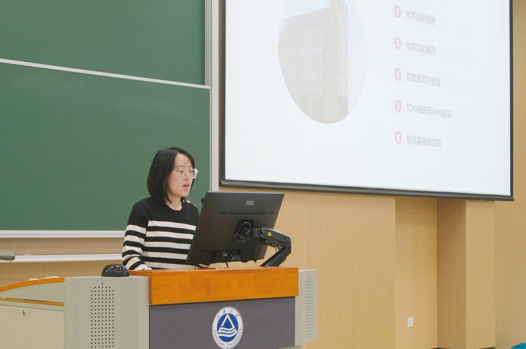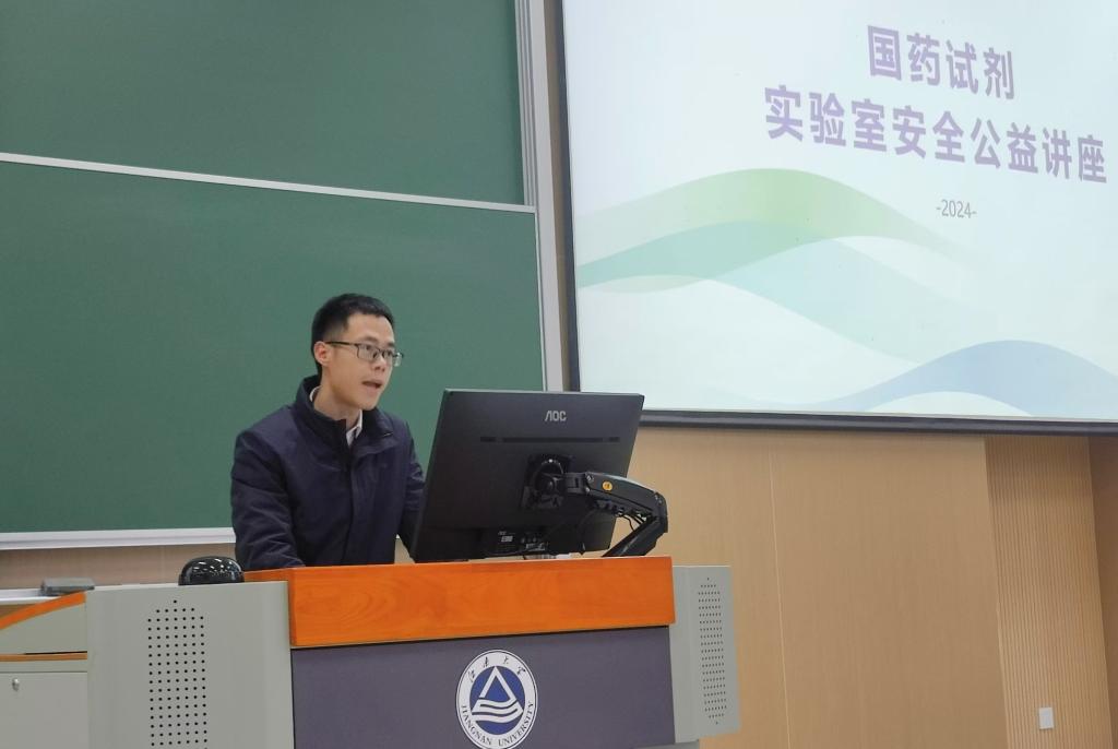 在教学楼2A127举办实验室化学品安全讲座。国药试剂实验室安全讲师嵇宁安受邀做主题报告。校实验室与资产管理处赵森,h动画