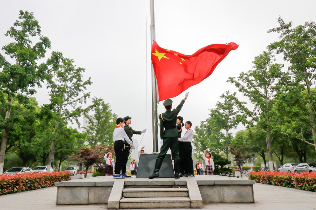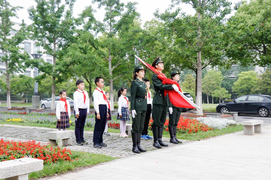 随后,在飘扬的五星红旗之下,小学生代表刘融进行了“我爱我的祖国”的主题演讲,诉说对富饶美丽、文化绵长的祖国的眷恋,以及长大后报效祖国的远大志向。在场师生共同合唱《少先队队歌》《歌唱祖国》,在雄壮有力的歌声中,坚定爱国奋斗信念。