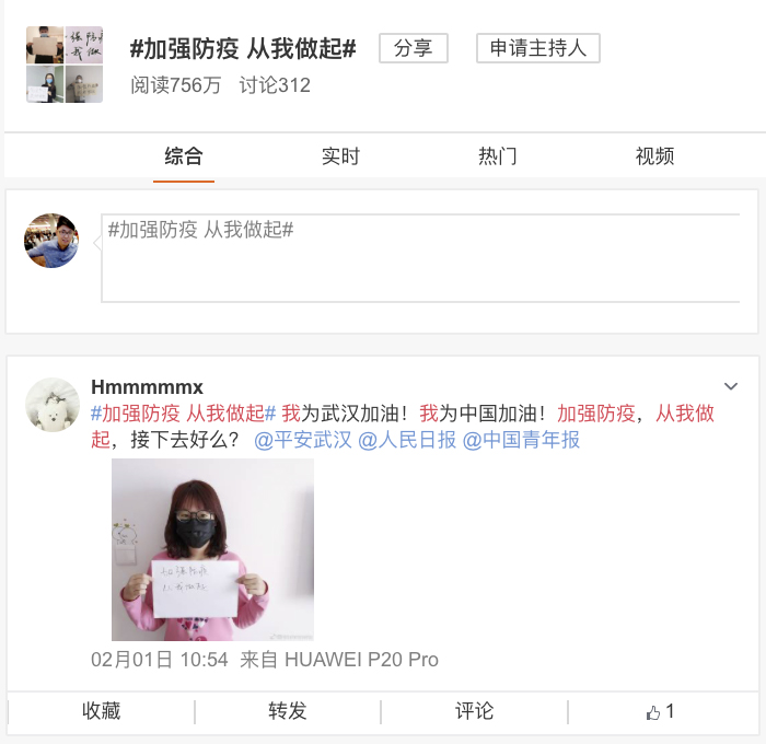 师生自发在微博上发起#加强防疫从我做起#网络活动,希望为防疫工作贡献自己的力量,把正能量传递给大家。
