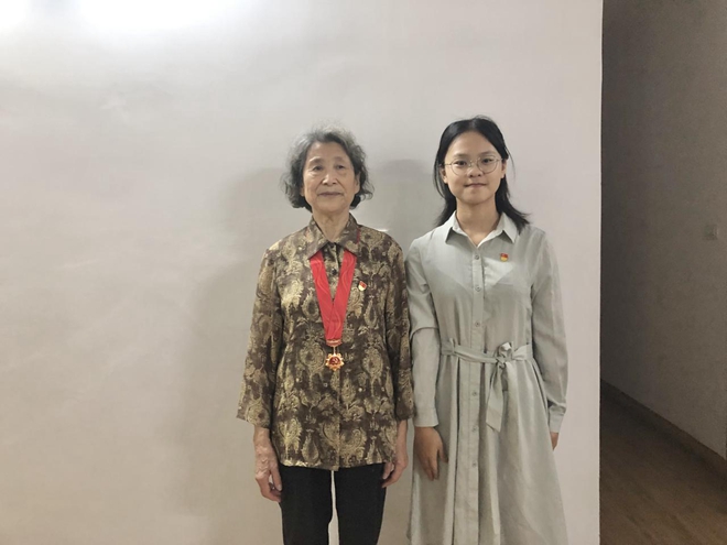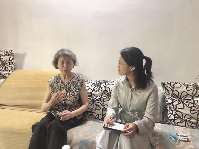 生物工程专业的大三学生韩孟希,来到春晓社区王存美的家中,采访了这位党龄超过60年的老党员。