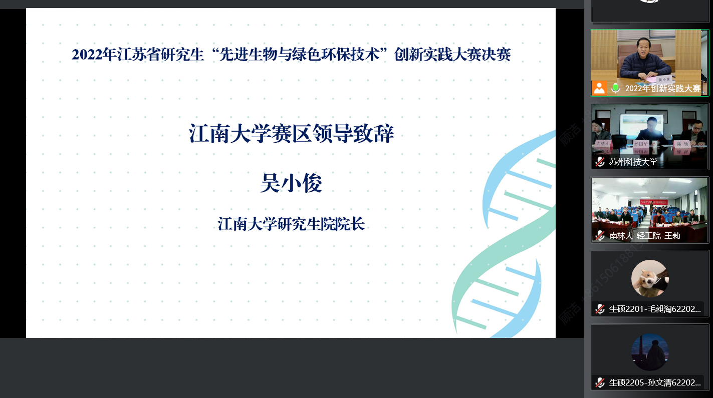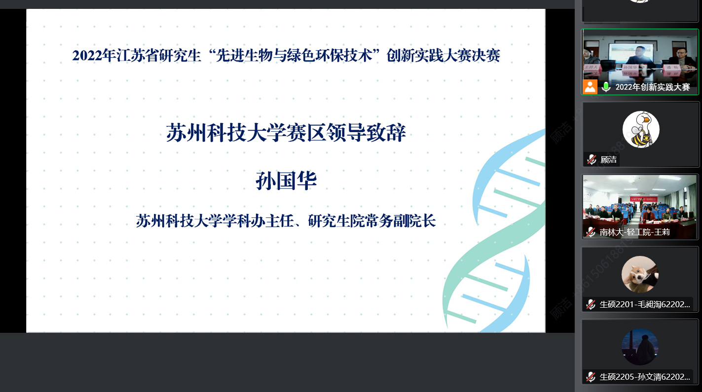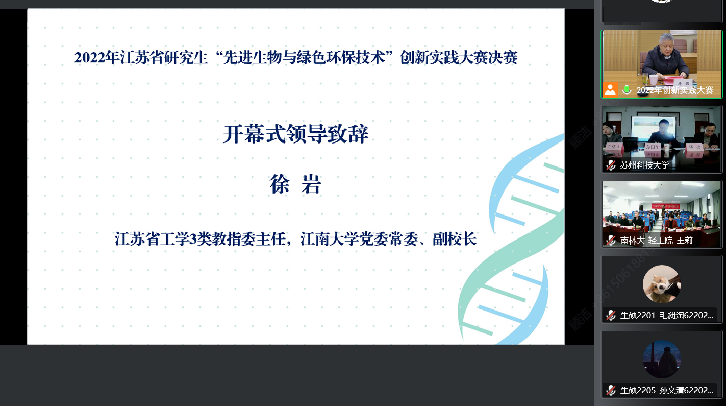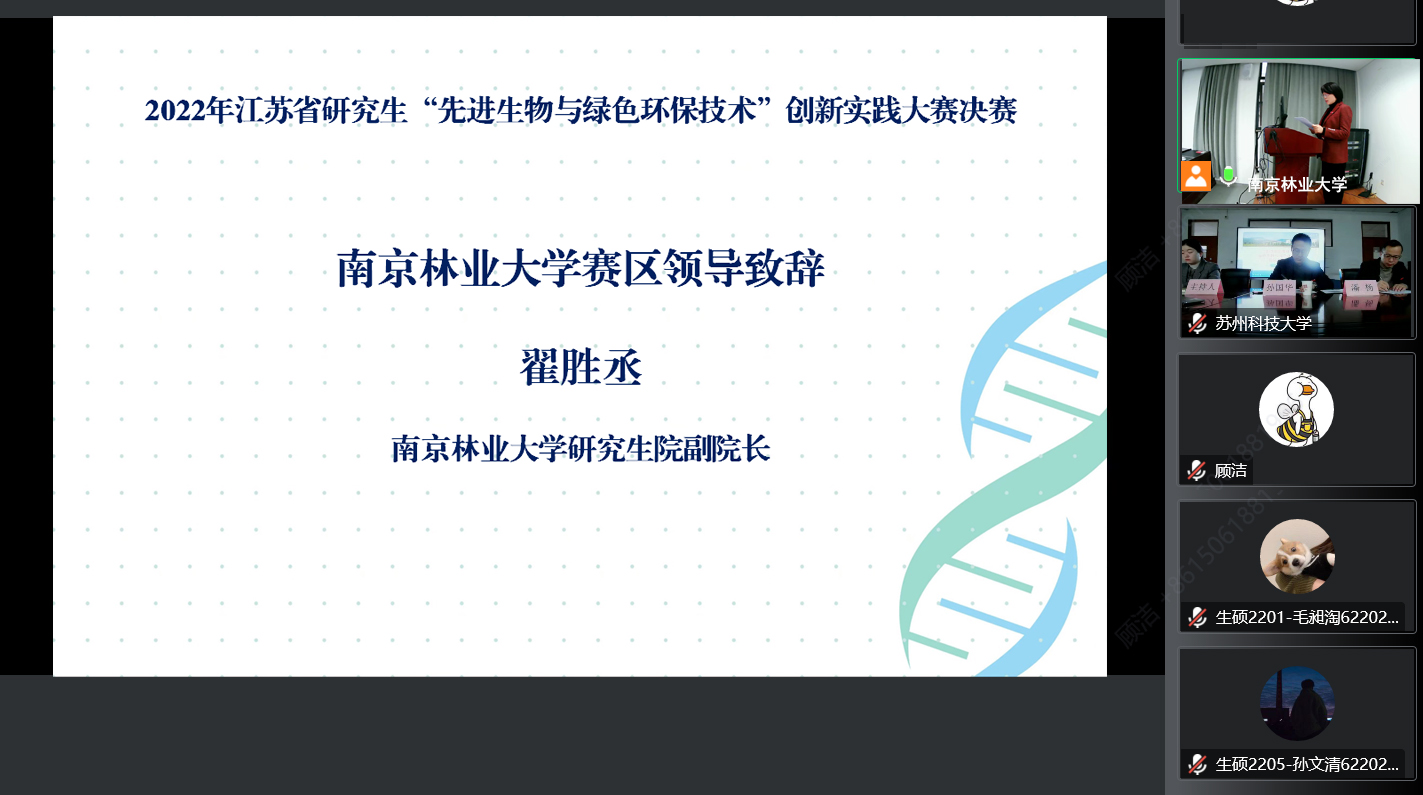 、南京林业大学、苏州科技大学、江苏大学联合承办的2022江苏省研究生“先进生物与绿色环保技术”创新实践大赛拉开帷幕。来自厦门大学、中国科学院青岛生物能源与过程研究所、华东理工大学、西安交通大学等20余所高校的400余名师生通过线上方式参加了本次大赛。江苏省工学3类教指委主任、h动画