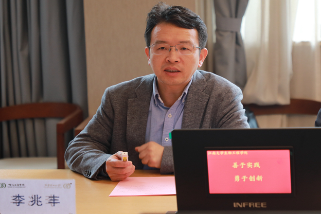 李兆丰进行新一轮本科教育教学审核评估工作宣讲,首先解读了教育部新一轮本科教育教学审核评估实施重点,接着从组建专班、开展自查、形成问题清单、撰写自评报告形成支撑材料、支撑教育部线上线下审核评估、制定整改方案提交整改报告等方面介绍了学院迎评工作重点。他表示,整改是审核评估重要一环,学院要坚持问题导向,强化结果使用和督导复查,推动落实主体责任、建立持续改进长效机制,培育教学质量文化。他强调,学院要对标对表,认真完成自评报告及整改报告,切实做好迎评促建工作准备。