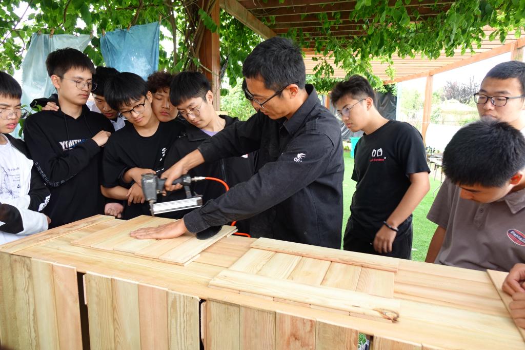 无锡万家田园生态农业有限公司校外耕读教育实践基地开展劳动实践活动。同学们在实践基地两位老师的指导下,积极投身于劳动活动中,分两组制作昆虫屋。在确保安全的前提下,完成了锯木、射钉紧固、刨皮、组装等工作。同学们积极参与、分工合作,历经三个多小时的不懈努力,眼前竖立起的昆虫屋让所有人都充满了参与感和成就感。