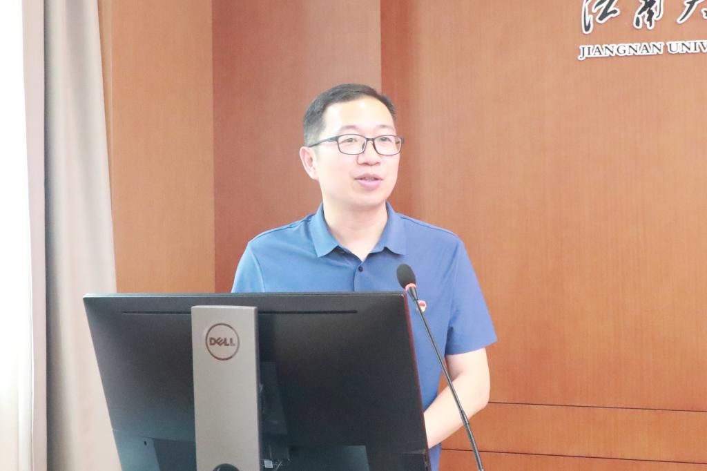 党委书记程捷音、院长刘龙等党政班子成员,粮食发酵与食品生物制造国家工程研究中心、未来食品科学中心班子成员等参会。马克思主义学院副院长刘俊杰教授作主题教育专家辅导报告。