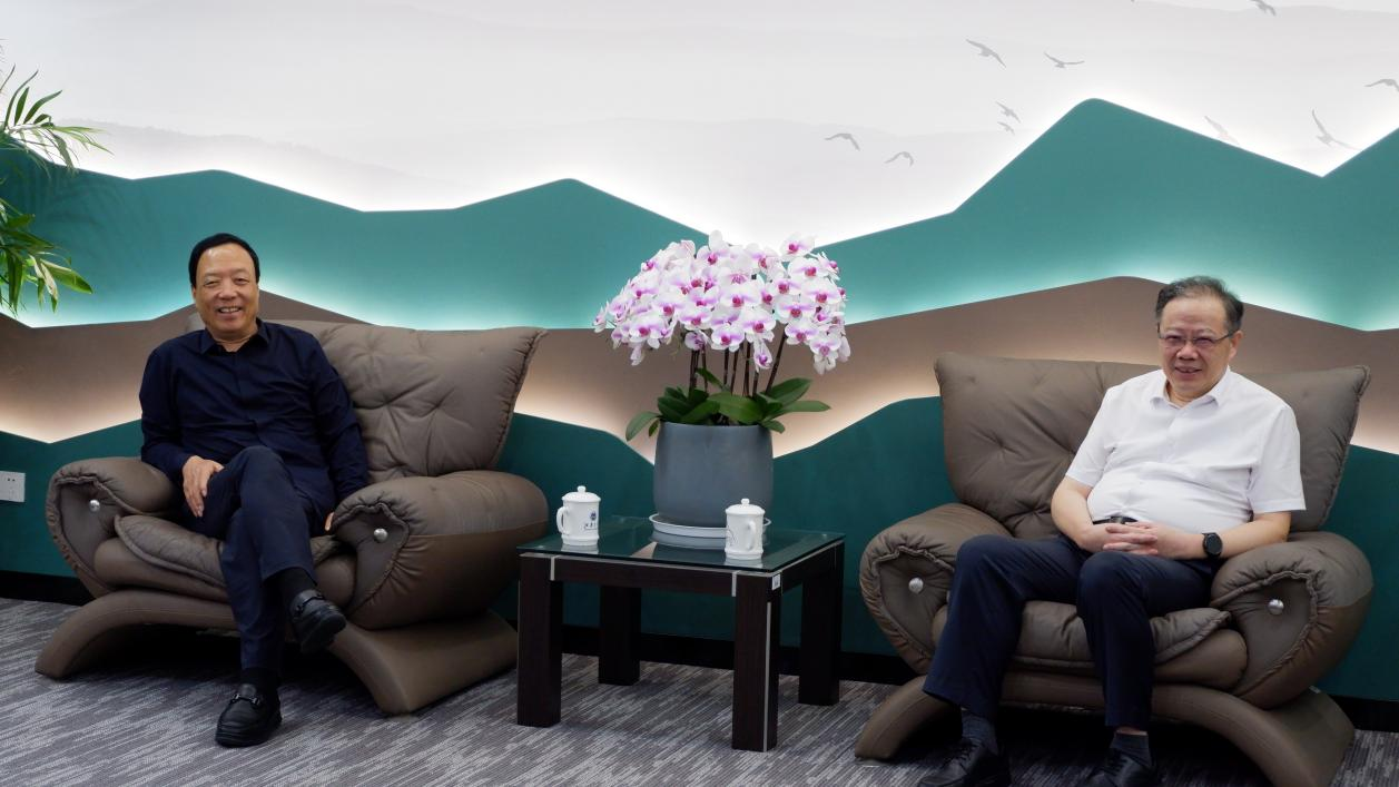 党委书记朱庆葆(右)与天士力创始人、天士力控股集团董事局终身荣誉主席闫希军(左)会面
