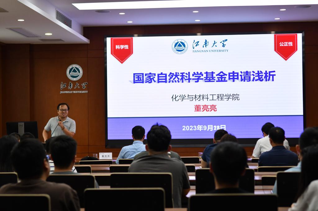 在专题报告环节,董亮亮副教授结合自身工作经验,详细讲解了国家自然科学基金各项目类型及申报要求、项目评审流程、高质量申报书撰写等方面的内容,重点对申报书各部分内容的关键点和注意事项进行了指导。饶志明教授分享了多年的项目申报经验,并以其团队新获批的面上项目和青年基金项目为例,结合具体内容,讲解如何写好项目申报书、更好展示项目特色和创新之处。之后,新获批2023年青年基金项目的胡金远博士分享了青年基金项目申报的心得体会,梳理了申报书撰写过程及各部分内容的逻辑联系。