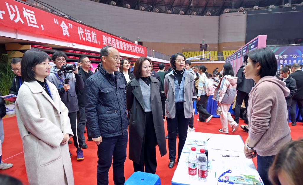 开幕式后,相关领导一同前往各招聘展位,与用人单位进行充分交流,详细了解企业的用人需求,同时还与求职学生亲切交流,给予就业指导,鼓励大家树立正确的就业择业观念,抓住应聘的黄金时间段,精准分析自身情况,努力与企业实现“双向奔赴”。