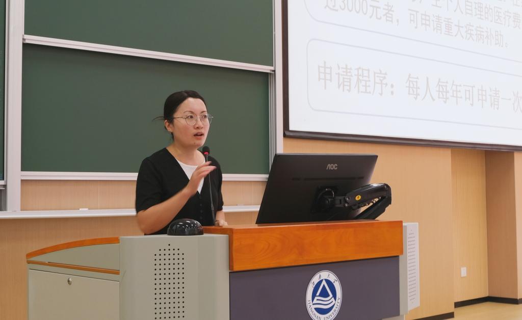 校医院副院长闫立景具体介绍了大学生医疗就诊相关内容,包括参保方式、就诊流程、疾病补助政策、警惕医托等。同时,她向同学们科普了世界范围内和我国结核病的分布状况、主要症状和防治方法;介绍了艾滋病传播概况以及传播方式。她强调,结核病、艾滋病等传染病离我们并不遥远,但也并不可怕。她呼吁同学们养成良好卫生习惯、洁身自好,若不幸感染,应保持冷静,积极接受治疗,做好自身健康的第一责任人。