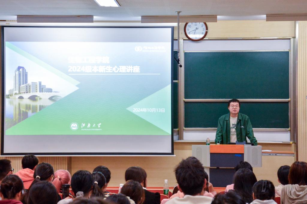 于10月13日晚在一教1B103开展2024级本科生新生心理健康教育讲座。本次讲座主题为《给心灵一片净土》,由国家二级心理咨询师、h动画