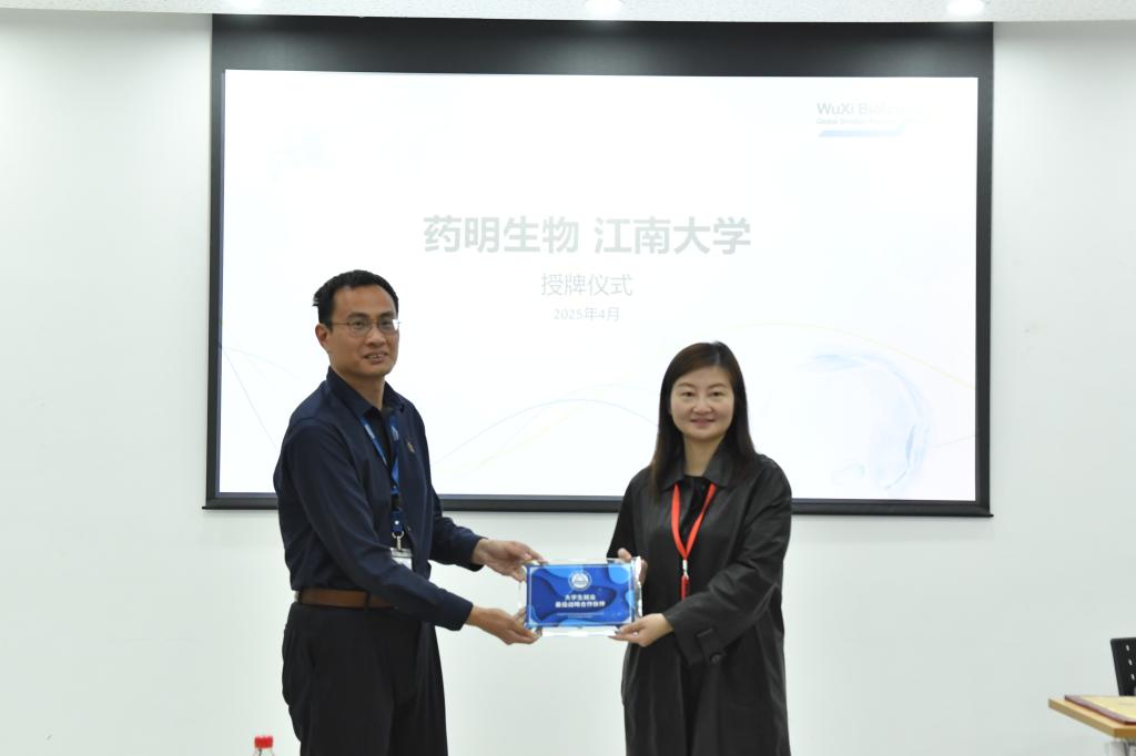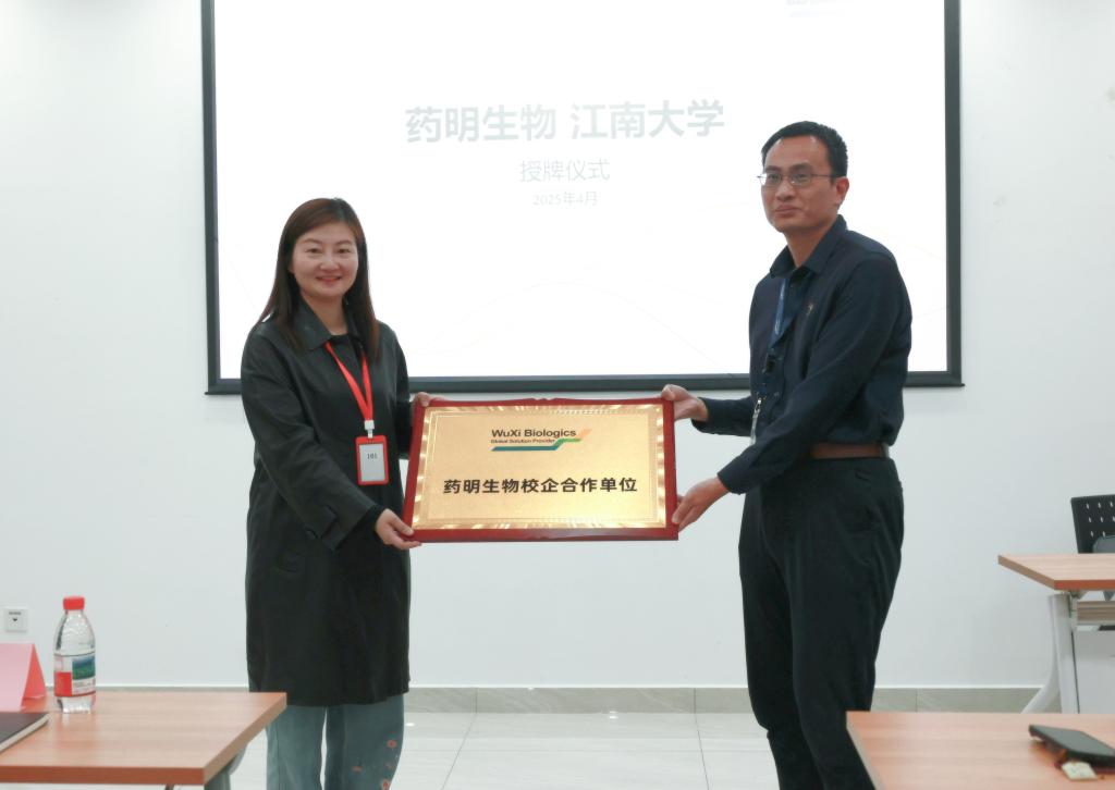 与药明生物合作深入而广泛,期待双方能携手并进,共推行业发展。会上,林丹代表学院向公司授牌“大学生就业最佳战略合作伙伴”,王家乐代表公司向学院授牌“药明生物校企合作单位”。在交流讨论环节,来访师生还就实习就业、教学实习基地建设等和公司领导开展了热烈讨论。
