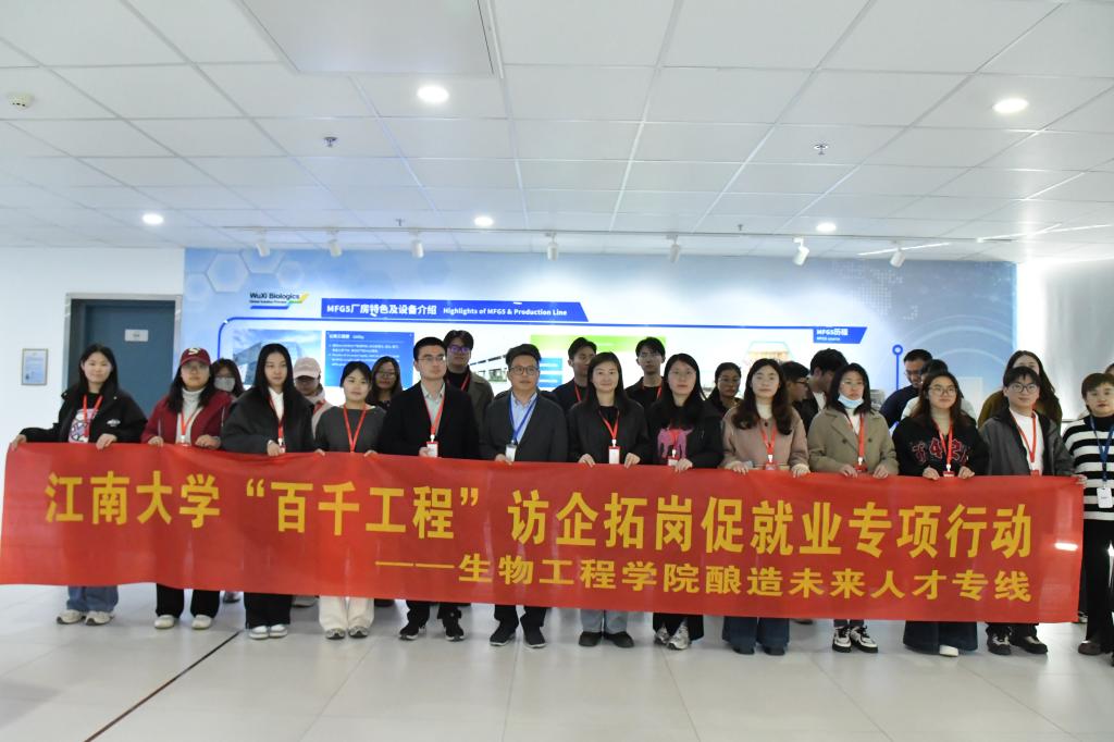 党委副书记兼副院长林丹带队来到无锡药明生物技术股份有限公司开展访企拓岗交流活动。学院副研究员夏媛媛、本科教学秘书胡惟佳、辅导员张同舟、宋大有、刘洛君及二十余名本科和研究生代表参加了活动。