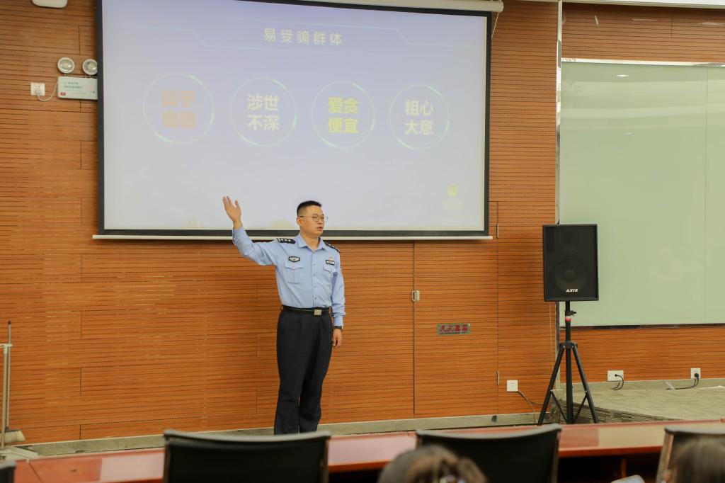康伟锋以近期高发的“网络交友敲诈”“网购刷单”“演唱会门票代购”等真实案例为引入,向同学们揭露了诈骗分子精心设计的“花式套路”,同时深入剖析了大学生群体因社会经验不足、防范意识薄弱等极易落入诈骗陷阱的典型情形,并强调在日常生活中要坚决做到不点击未知链接、不轻信陌生来电、不随意透露个人信息,尤其在转账汇款时要多次核实信息,确保资金安全。同时提醒全体同学安装注册国家反诈中心APP,关注平安江大微信公众号,保护好个人信息,筑牢安全防诈底线。