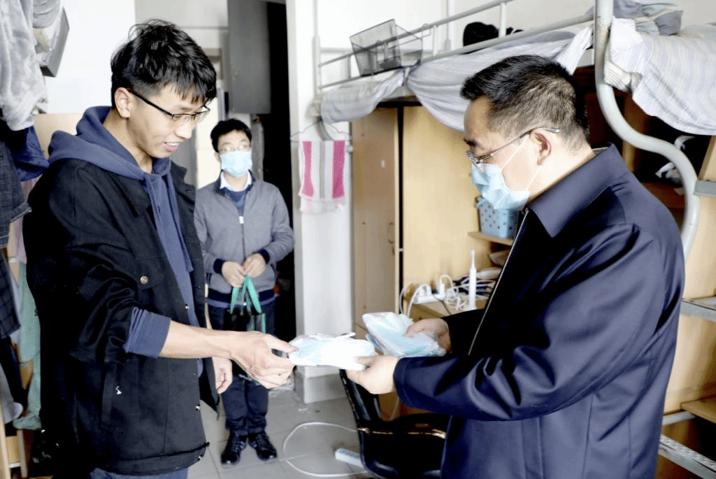 学院党委书记王维、院长许正宏作为学院主要负责同志,认真落实学校精神,主动作为、靠前指挥,充分践行群众路线,及时关注疫情防控期间师生思想动态。在第一批学生返校当日,深入学生宿舍,为同学送上体温计、医用口罩等防疫物资,亲切询问了假期学习生活、返校感受等各方面情况,并叮嘱同学们遵守学校疫情防控各项规定,做好个人防护、调适心态情绪,以积极的状态对待学习科研,做好就业等相关准备,努力把疫情防控期变成内功修炼期。