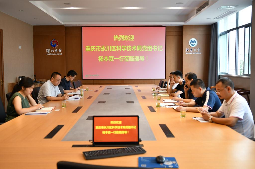 的发展历史和专业特色等基本情况,同时介绍了学校校企、校地合作的情况。杨本森书记介绍了重庆市永川区的基本概况、产业特色、发展规划和科技需求,重点对国家级非物质文化遗产“永川豆豉”和当地农副产品的产业规划进行了介绍,并希望能够在技术研发、人才交流以及项目申报等方面与我院进行深入合作。随后,宋军董事长和曾宪西总经理分别就永川豆豉和果酒产品的具体需求与学院领导和老师们进行了深入交流。