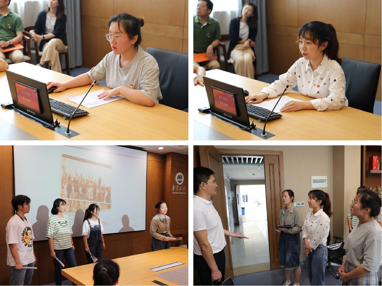 青年大学生讲党史,支部党史宣讲团代表张欣怡同志向大家做了“不忘初心 砥砺前行”主题分享,带领支部成员回顾了党从南湖起航到新中国成立的开天辟地的恢弘历史。全国首批百个研究生样板党支部生物系统与生物加工工程研究室支部书记张海云做主题宣讲,她结合无锡历史讲述了党从新中国成立直至改革开放的发展脉络和变革伟业。