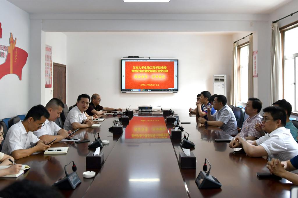 党委“促进校企合作 弘扬创新精神”校企联合党史学习教育在贵州仁怀举行。学院党政领导班子成员、学院行政党支部党员代表、贵州钓鱼台国宾酒业有限公司党支部党员代表参加。