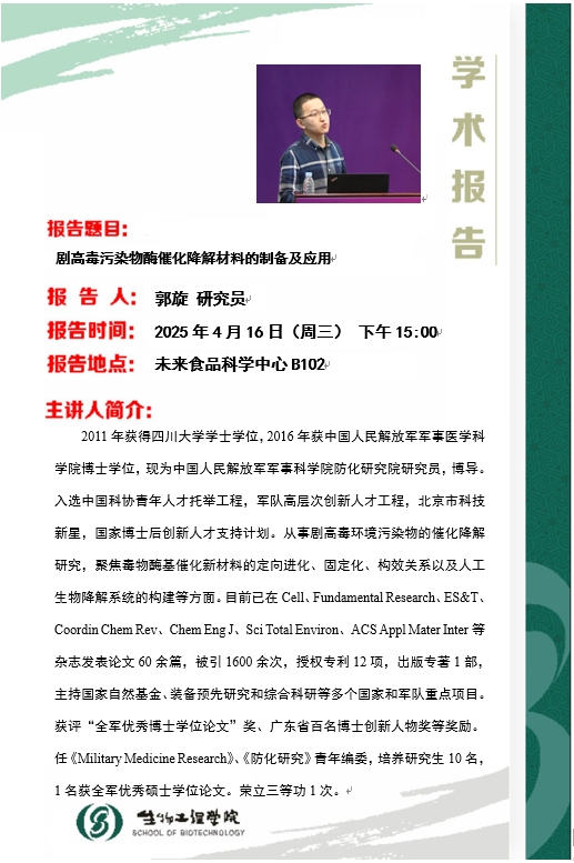 上一篇:4月23日学术报告:复杂聚酮天然产物的生物合成研究