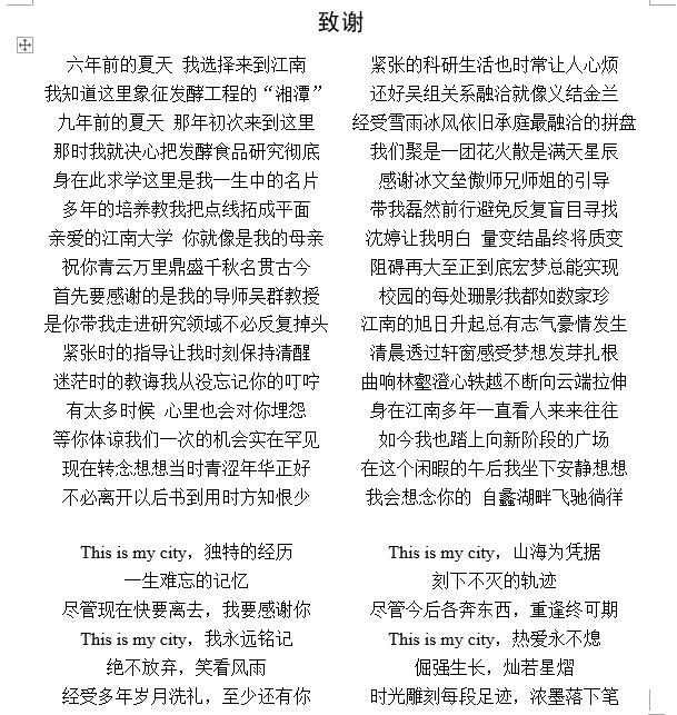 “音乐一直是我生活中很重要的一部分。还记得论文撰写最艰难的日子里,实验室的机器运转和耳机里的旋律相伴左右,当时就希望用一种最能代表‘我’的方式让这段科研时光留下烙印。”班世博说,他以《江南city》命名,不仅蕴含着对“无锡”这座江南城市的眷恋,也表达出他对母校的感激。 毕业后,班世博将前往贵州工作,他说,希望自己给母校的这份礼物,也成为未来自己成长的动力。