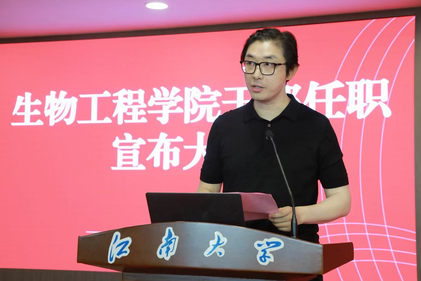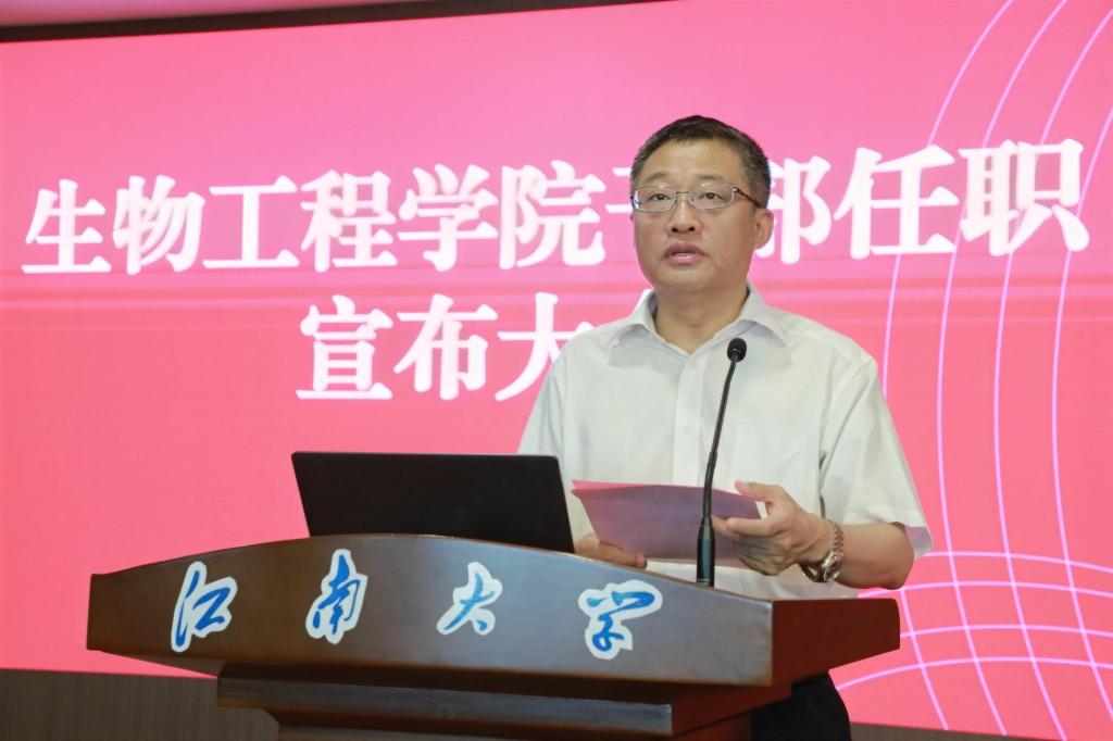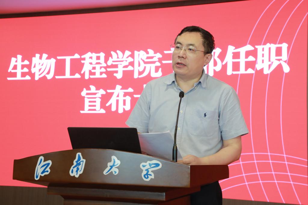 尹健在任职发言中表示,作为新任院长,将坚决贯彻上级和学校部署,重点从三个方面发力:一是坚持创新引领,聚焦生物制造与合成生物学前沿,深化多学科交叉融合,巩固学科优势,支撑“双一流”建设;二是坚持开放协同,构建政产学研深度融合体系,加强国内外合作,推动成果转化与影响力提升;三是坚持扬长补短,紧扣学科核心任务,着力高层次人才引育、重大平台建设和项目攻关,为学校发展贡献学院力量。他表达了对学院前辈的敬意与接过“接力棒”的责任,并表示将传承“善于实践,勇于创新”的院训精神,与班子成员通力协作,恪尽职守,全力开创h动画