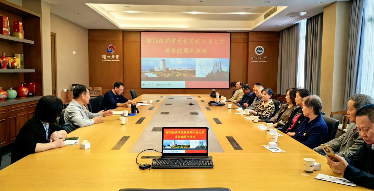 10月20日上午,我校发酵工程76级部分校友在阔别校园近50年后重返母校,共叙“发酵情”,共庆建校65周年。学院党委书记程捷音、学校校友会秘书长林云鉴、学院办公室主任徐静等参加了校友座谈会。
